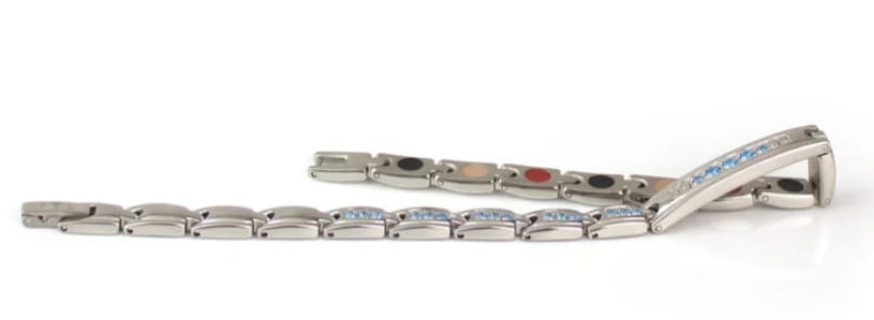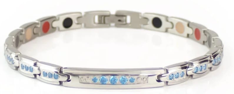 Negative Ion Bracelet, Stainless Steel with Aquamarine Swarovski