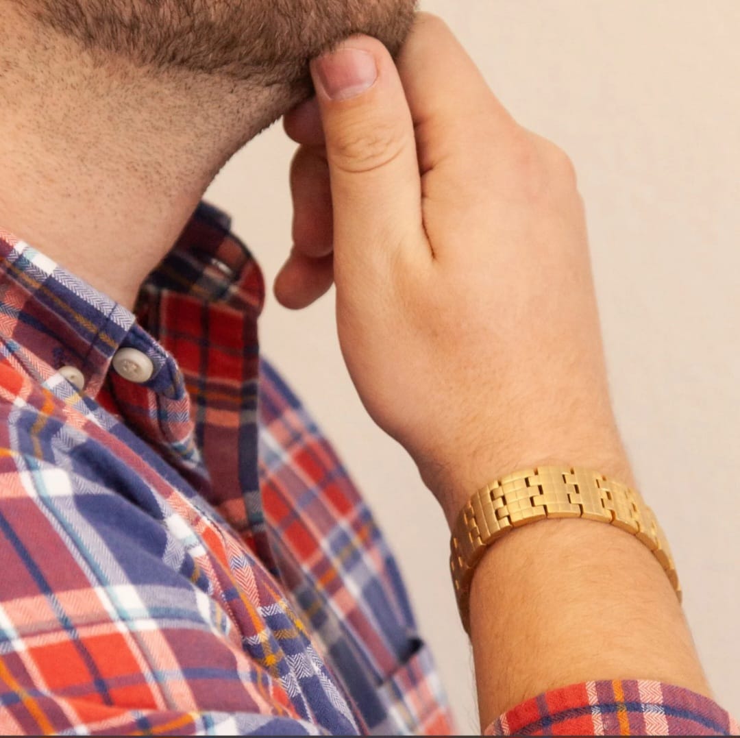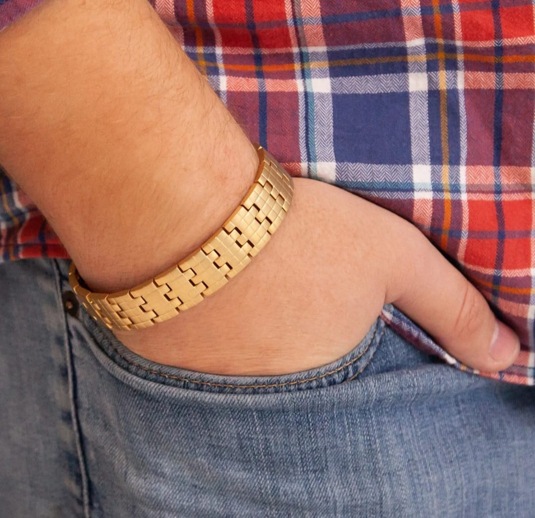 Chess Board Gold - Negative Ion Bracelet, Matte Gold Finish, is the perfect color for every outfit. The user benefits from wearing gold and negative ions in one upscale negative ions bracelet. Gold is a must-have jewelry piece that every person has in their collection.