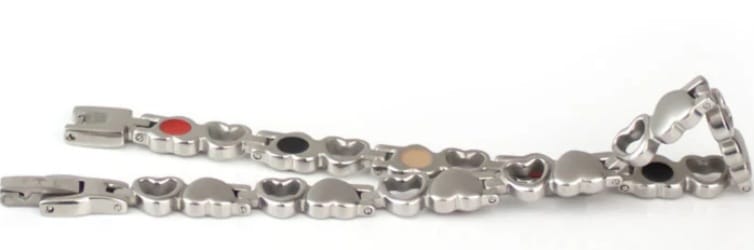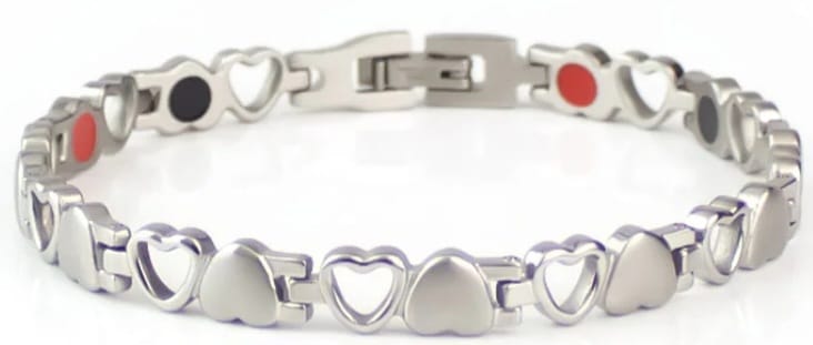 Hearts Silver - Negative Ion Bracelet, Stainless Steel