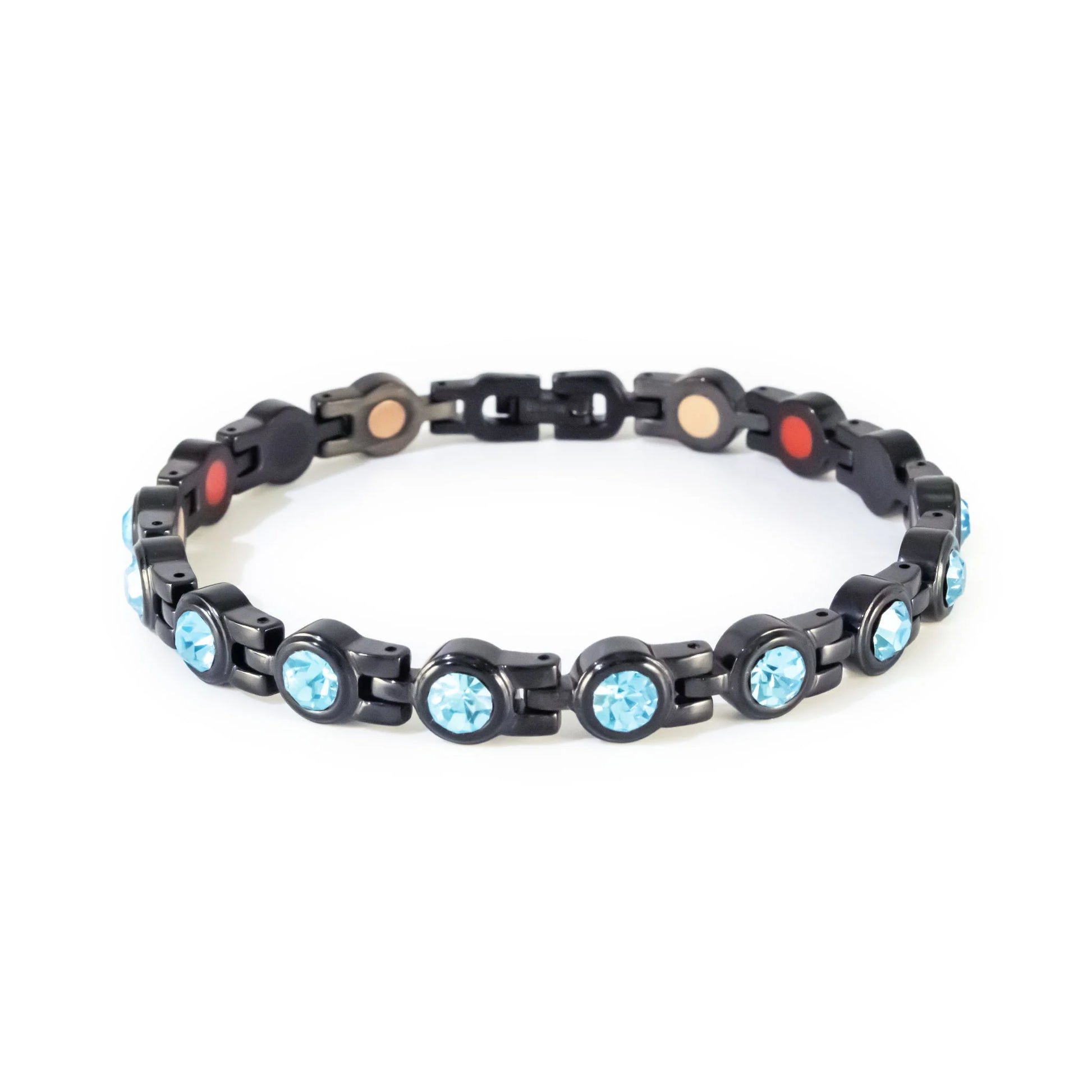 Negative Ion Bracelet, Aqua Crystals on Black Steel