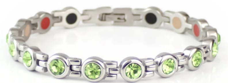 Stod Silver & Green Crystal- Negative Ion Bracelet, Stainless Steel with Green Swarovski Crystals
